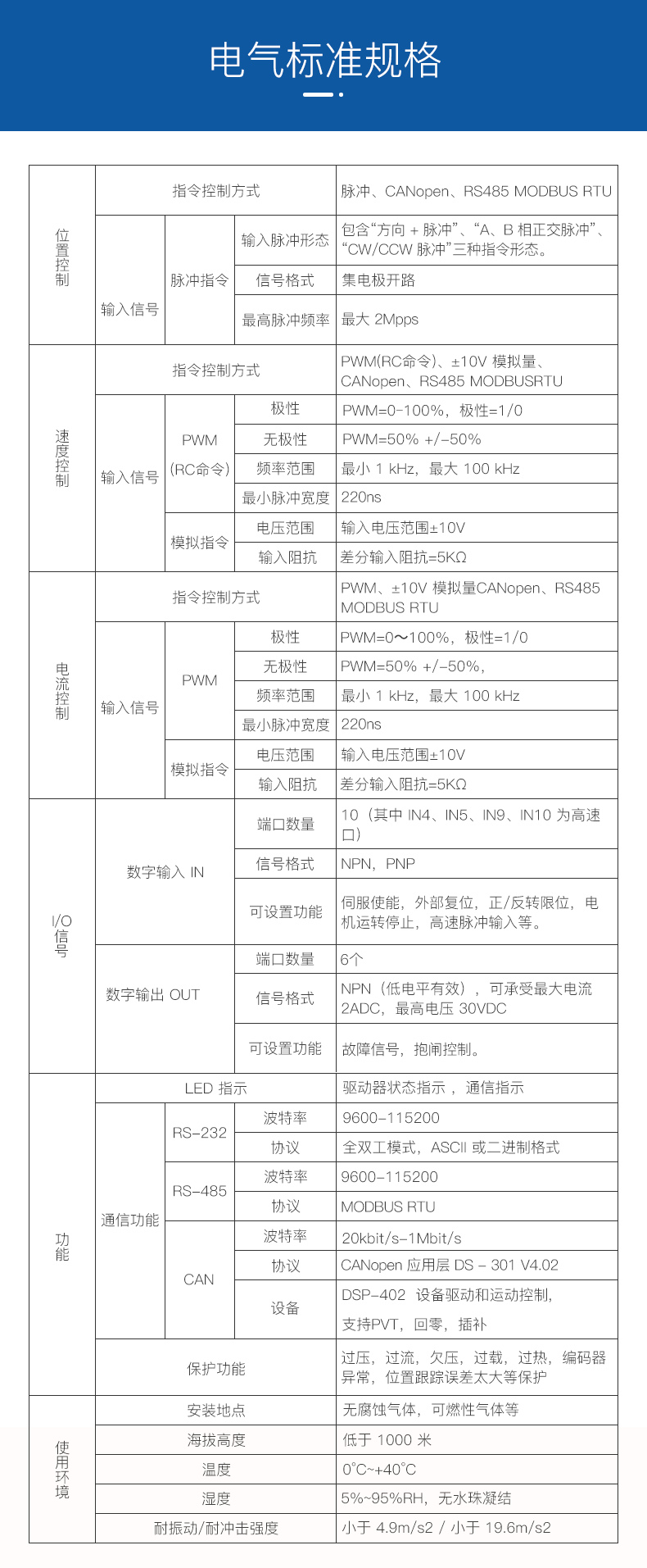 ?CAN2.0 局域總線(xiàn),兼容 CANopen DS-402,波特率最高 1MHz ;
